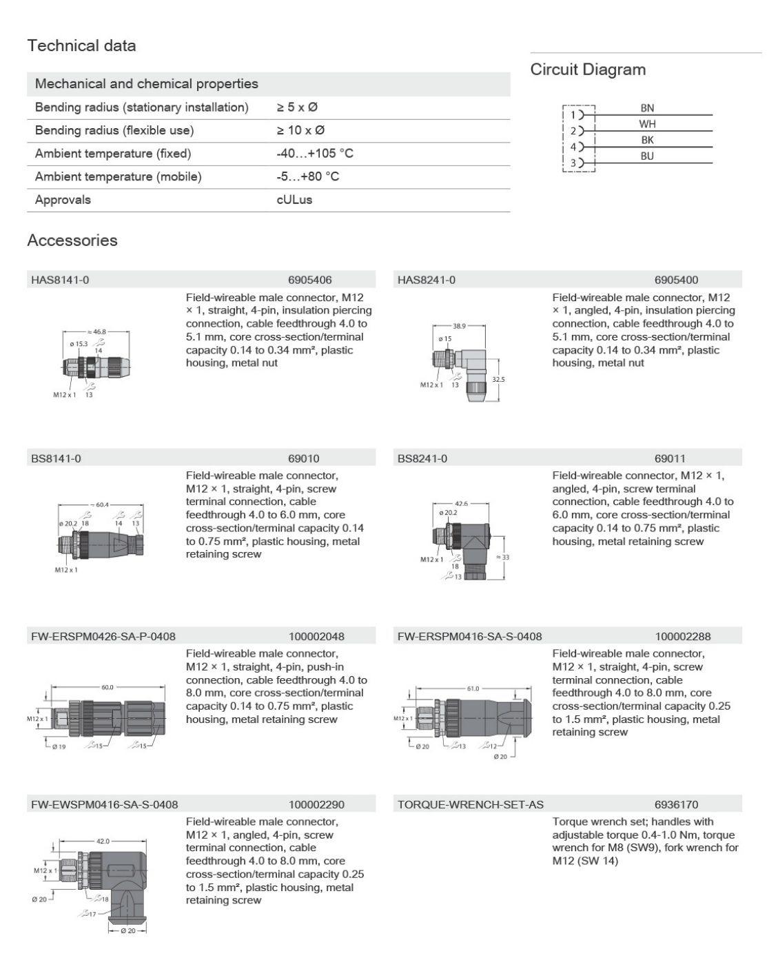 | หัวต่อด้านที่ 1 | M12 Female, Straight, 4 พิน |